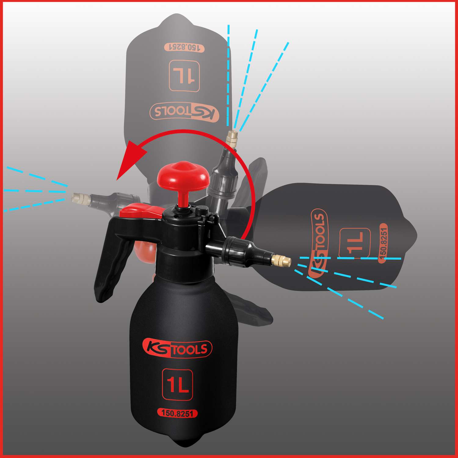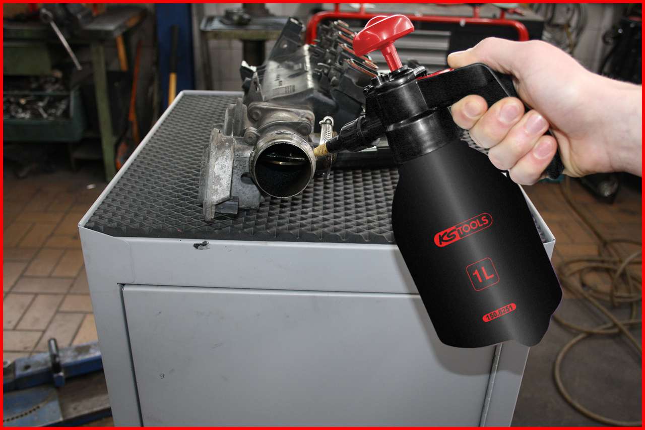 In der Werkstatt hantiert man mit einigen Lösungen und Chemikalien, die versprüht werden müssen. Passiert dies an schwer zugänglichen Stellen, ist ein Druck-Zerstäuber unerlässlich. KS Tools hat einen robusten Druck-Zerstäuber in zwei Größen im Programm, mit dem Werkstatt-Profis auch bequem über Kopf arbeiten können. Er eignet sich hervorragend zum Aufbringen verschiedener Chemikalien und Reinigungsmittel. Die Produktnummer bei KS Tools ist 150.8251 für den Zerstäuber mit einem Liter Inhalt und 150.8252 für das Produkt mit zwei Liter Inhalt.