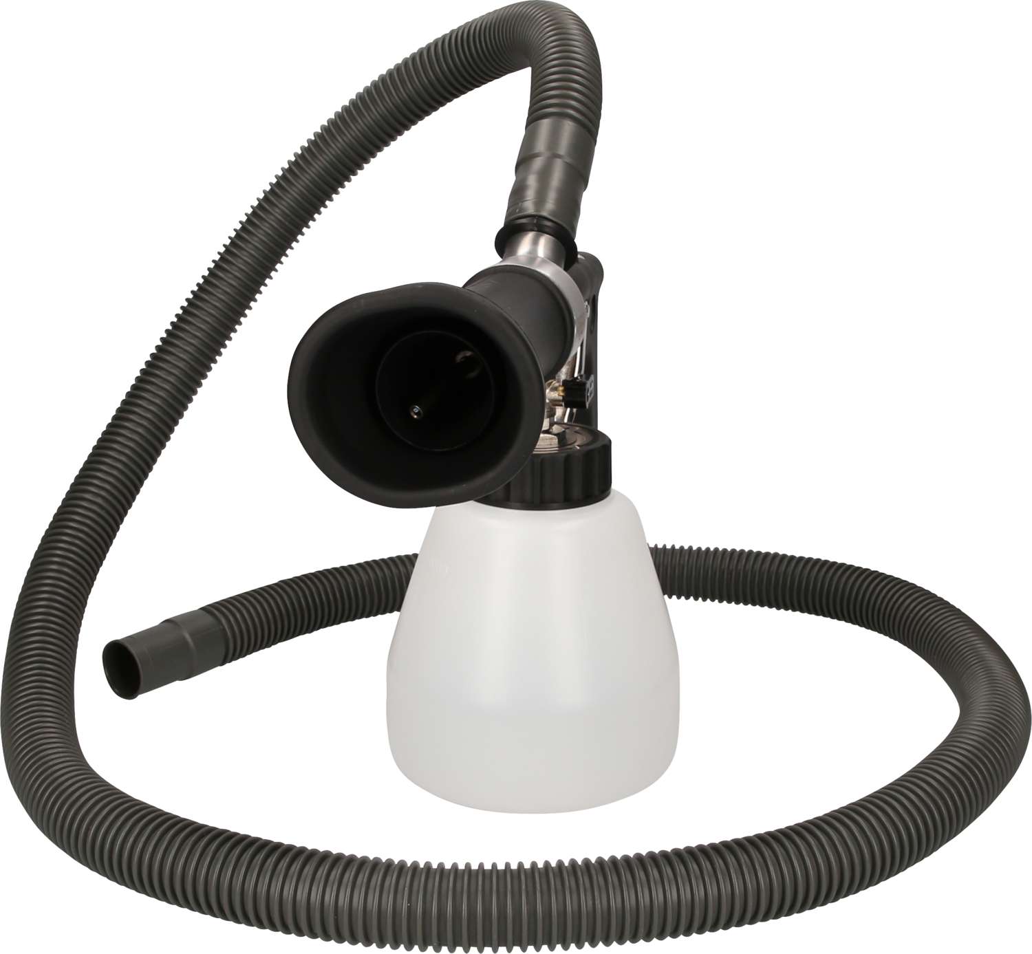 Der neue dreiteilige Druckluft-Reinigungs-Pistolen-Satz mit Absaugvorrichtung ist ideal geeignet, um Polster, Türholme, Lüftungskanäle, Teppiche, Fußmatten und Stoffsitze bis in die tiefsten Fasern zu reinigen. Die Pistole ist einfach zu handhaben, weil sie an die werkstatteigene Druckluft angeschlossen wird. Mit seiner einzigartigen zyklonischen und kugelgelagerten Rotations-Reinigungstechnologie erzeugt das Gerät gezielt Luftverwirbelungen und lockt so den Schmutz aus allen Winkeln. Weil hier Druckluft im Spiel ist, geschieht dies besonders effizient und energiesparend.