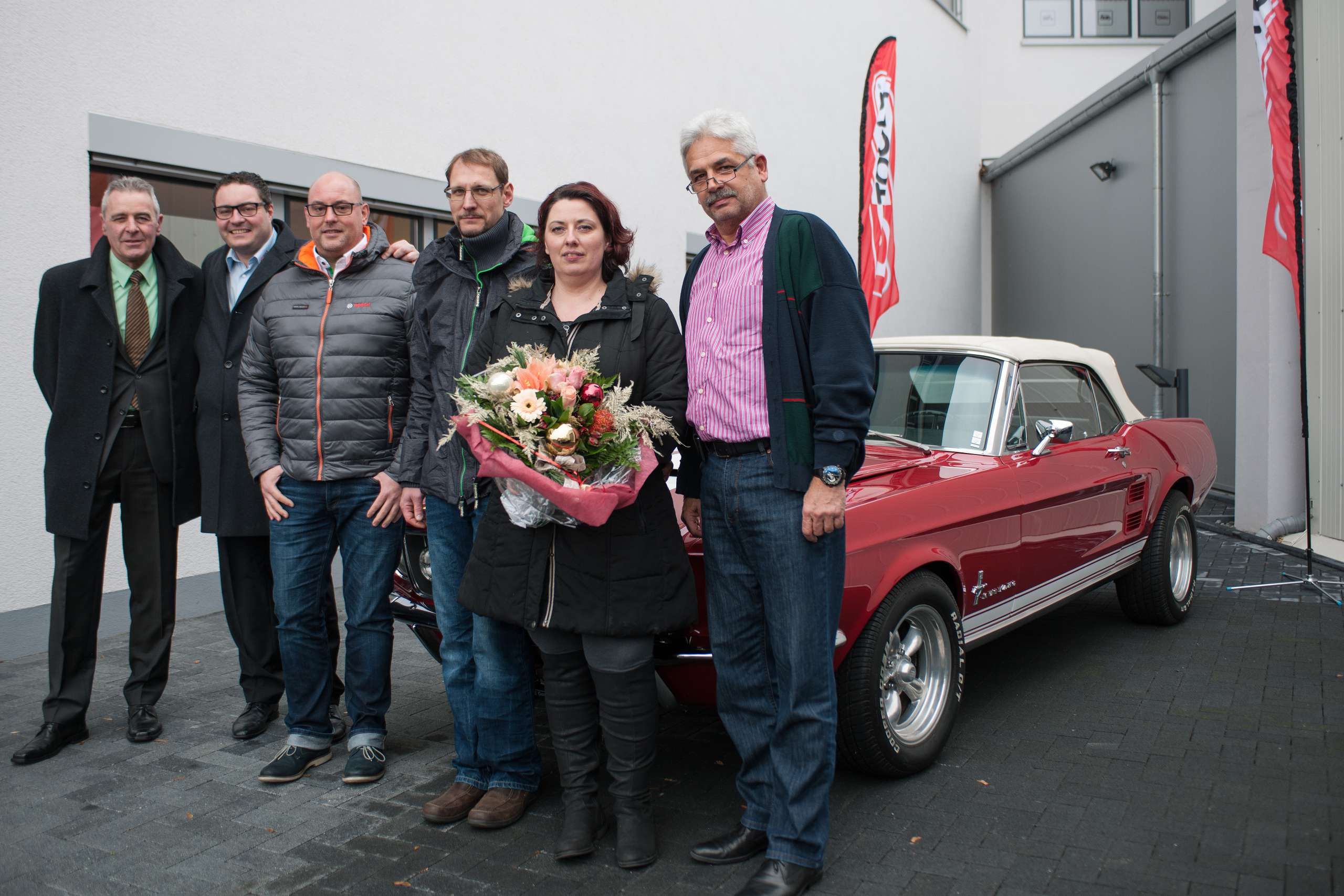 Nicht nur der Mustang hat die Messen mit KS Tools begleitet, sondern auch das Gewinnspiel, bei dem er der Hauptpreis war. So konnten Messebesucher seit November 2015 die Chance wahrnehmen, dieses einzigartige Fahrzeug zu gewinnen. Das rote Auto mit den markanten Rallyestreifen ist in einem hervorragenden Zustand. Es wurde erst kürzlich komplett zerlegt, sandgestrahlt und neu lackiert. Selbstverständlich hat es neue Sitze in schwarzem Leder und auch ein neues Verdeck mit faltbarer Glasscheibe. Der Münchner US-Cars Spezialist Berger Cars hat auch den Motor überholt und eine Ansaugbrücke „Edelbrock“ mit neuem Vergaser und Spezial- Zündanlage eingebaut. Und natürlich hat man bei der gründlichen Restauration sämtliche Chromteile zum Blinken gebracht. Insgesamt lässt so ein Mustang das Herz jedes Oldie-Fans höher schlagen. Holger Roloff hat das Auto am 12.12.2016 in Heusenstamm bei KS Tools in Empfang genommen und wird nun selbst zu einem Teil der Legende Mustang werden.