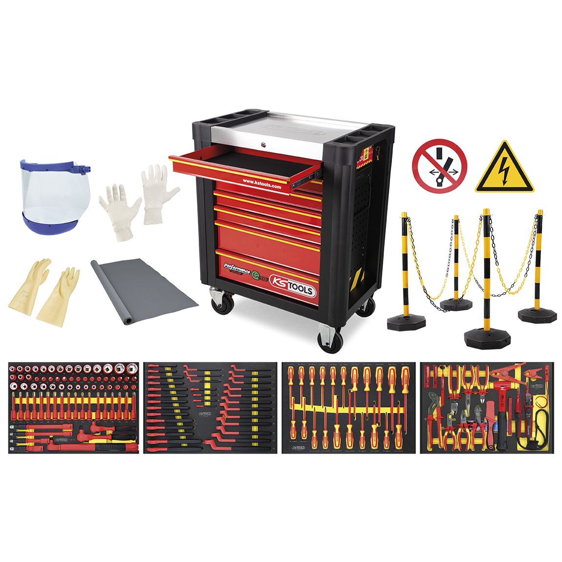 Mit über 1.400 Spezialwerkzeugen, die in über 10 Kategorien unterteilt sind, bietet das Unternehmen eine Lösung für nahezu jede Herausforderung, die in der E-Mobilität auftreten kann. Ob es sich um hochspannungsgeeignete Isolierwerkzeuge, spezielle Steckschlüsselsätze für Batterieeinbauten oder Diagnosetools für das elektrische Antriebssystem handelt – KS Tools hat die passende Antwort.