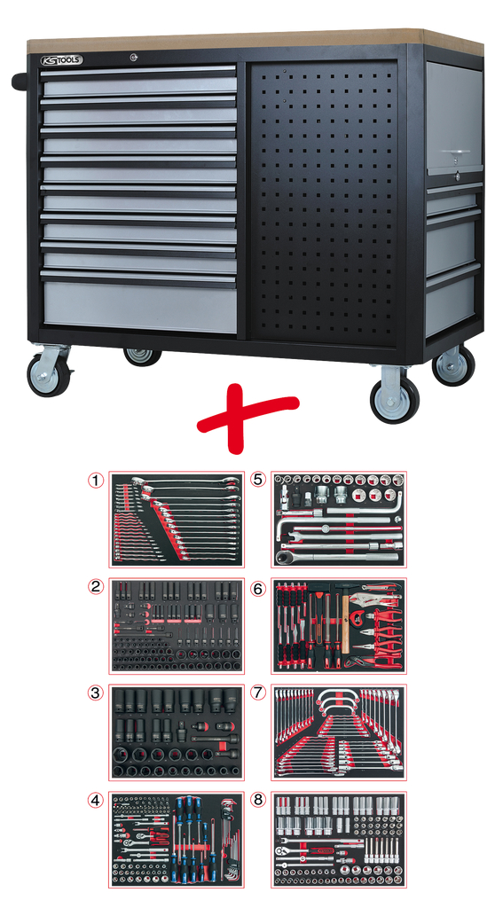 Werkzeug gibt es in jeder Werkstatt. Jeder Profi weiß, wie wichtig es ist, dass man es immer schnell zur Hand hat. Ein praktischer und durchdacht gebauter Werkstattwagen ist deshalb bares Geld wert. Werkzeugspezialist KS Tools hat jetzt einen besonders stabilen Nfz-Werkstattwagen im Programm, der noch mehr aushält als üblich. Außerdem ist er mit einem Sortiment bestückt, das speziell auf Nutzfahrzeug-Betriebe zugeschnitten ist. Der Werkstattwagen der MASTERline- Serie mit 11 Schubladen ist deshalb für diese Werkstätten ein echter Gewinn. Die Stahlblechkonstruktion mit 0,9 Millimeter Blechstärke sorgt dafür, dass er besonders verwindungssteif und standsicher ist, auch und gerade, wenn man ihn mit schwerem Werkzeug beladen hat. Das insgesamt 484-teilige Werkstattwagen Paket NFZ hat die Produktnummer 878.11468.
